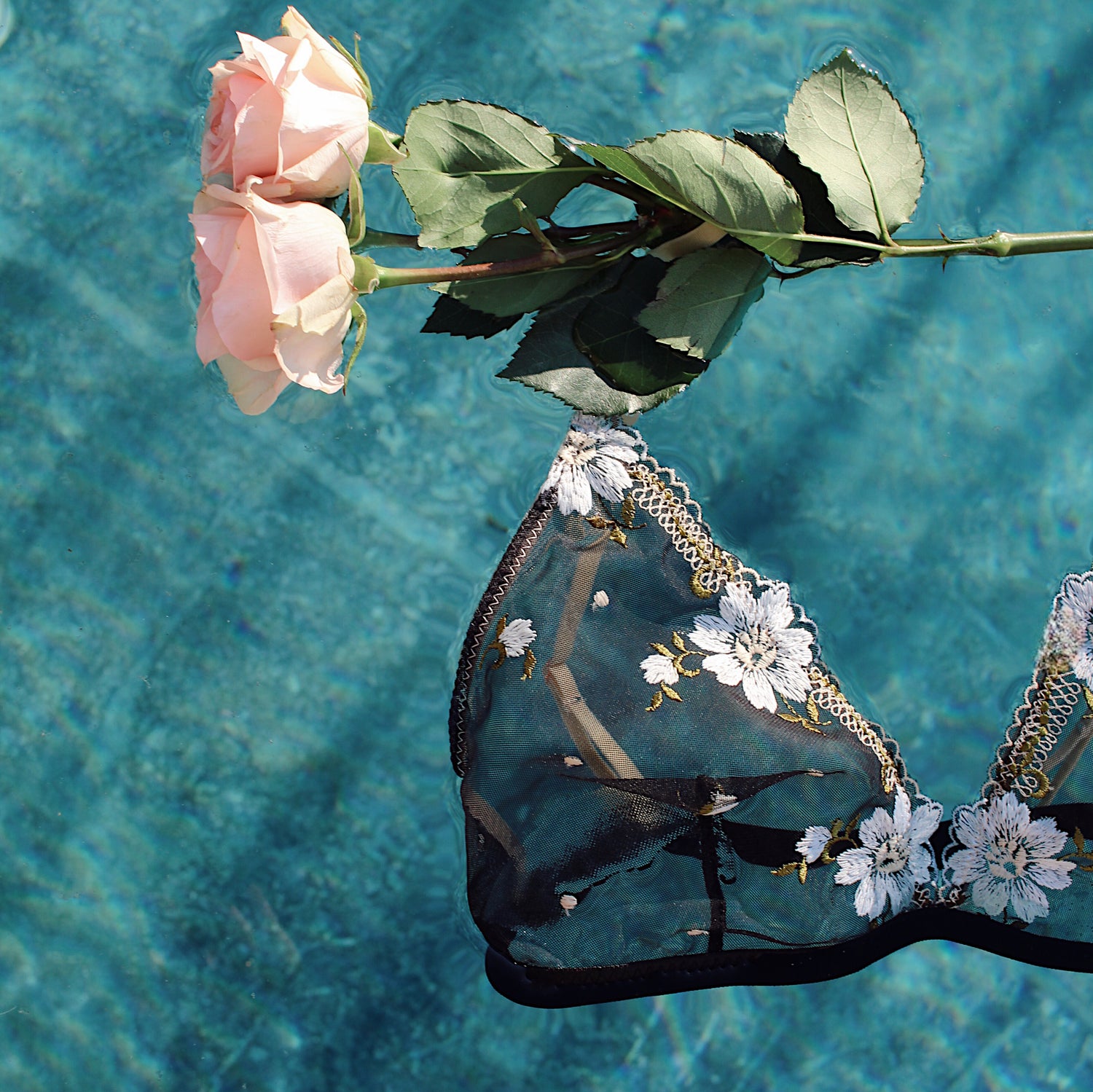 Black Floral Embroidered Mesh Bralette