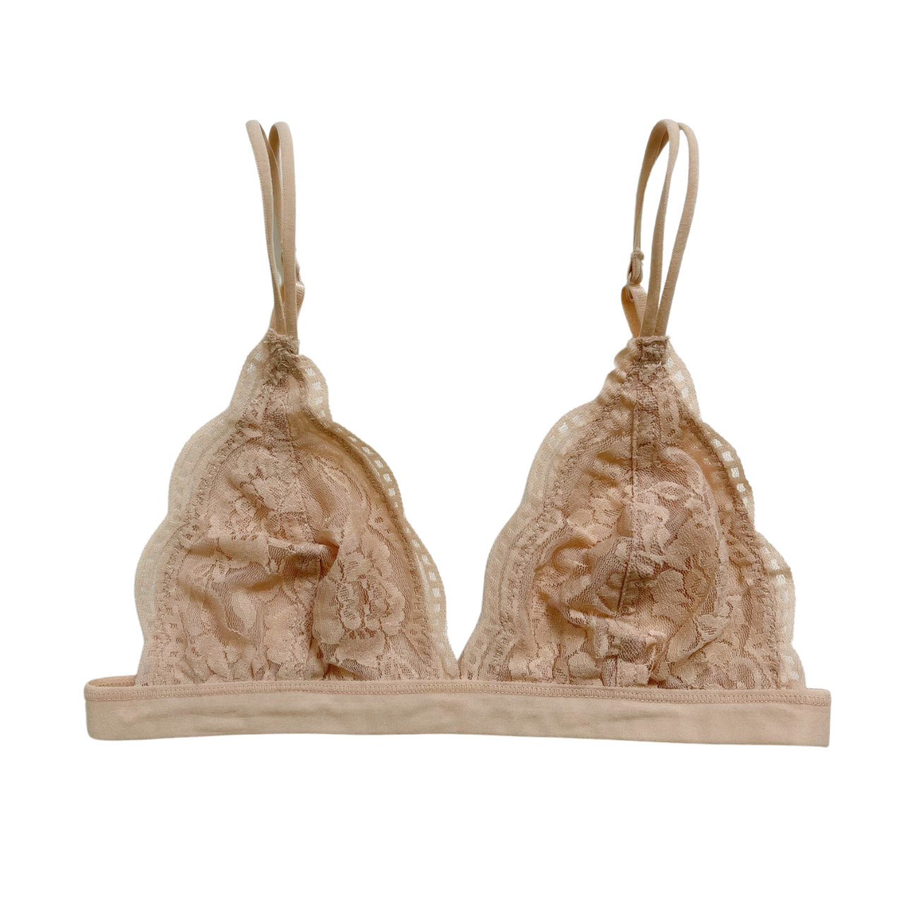 Introducing our best selling Nude Triangle Floral Lace Bralette - a luxurious, lightweight lingerie essential that adds a touch of elegance to any wardrobe. Made from soft, delicate lace, this beautiful bralette offers both luxurious comfort and versatile style combined with support and coverage.